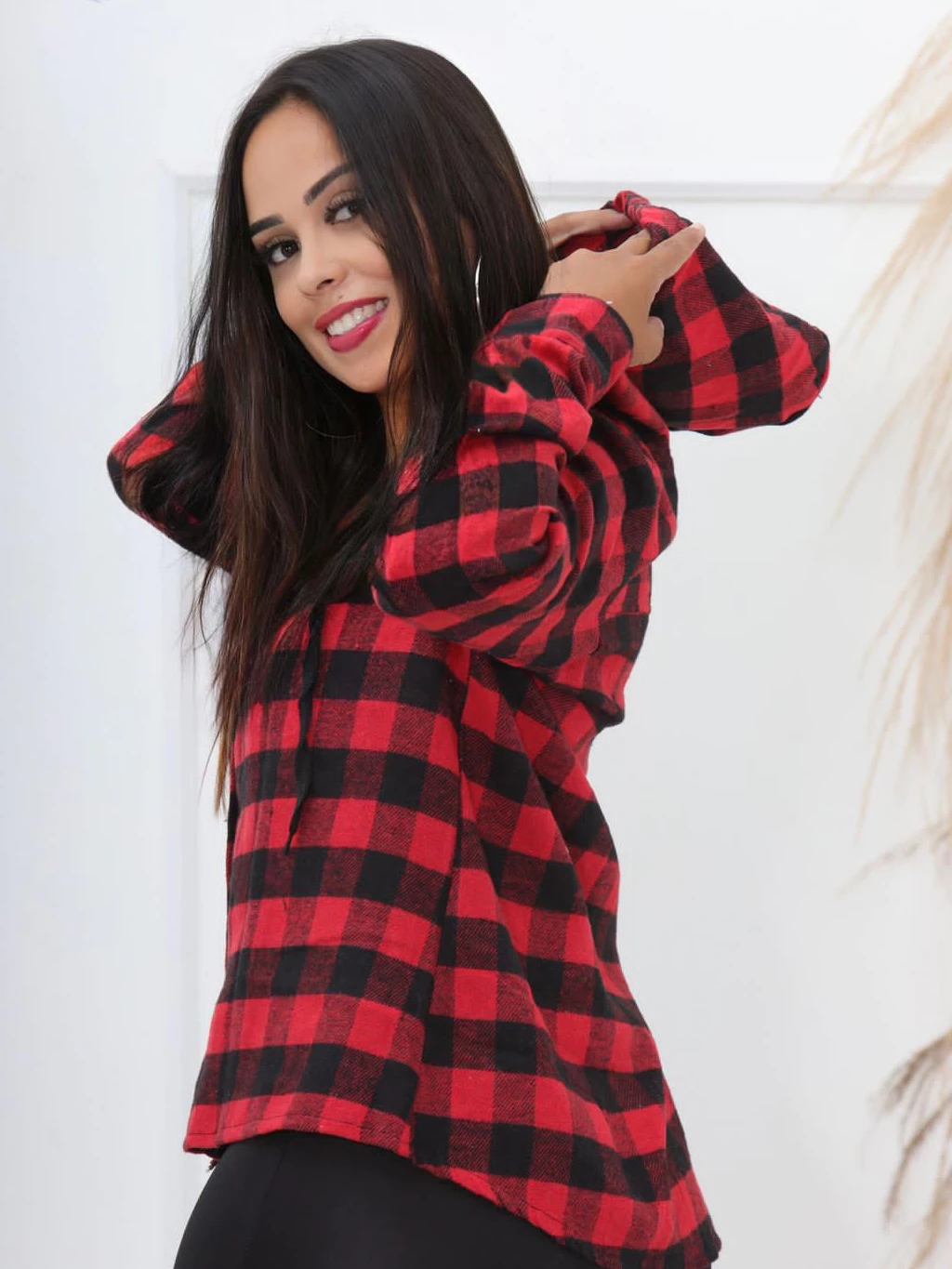 Camisa Feminina Flanelada Xadrez com capuz